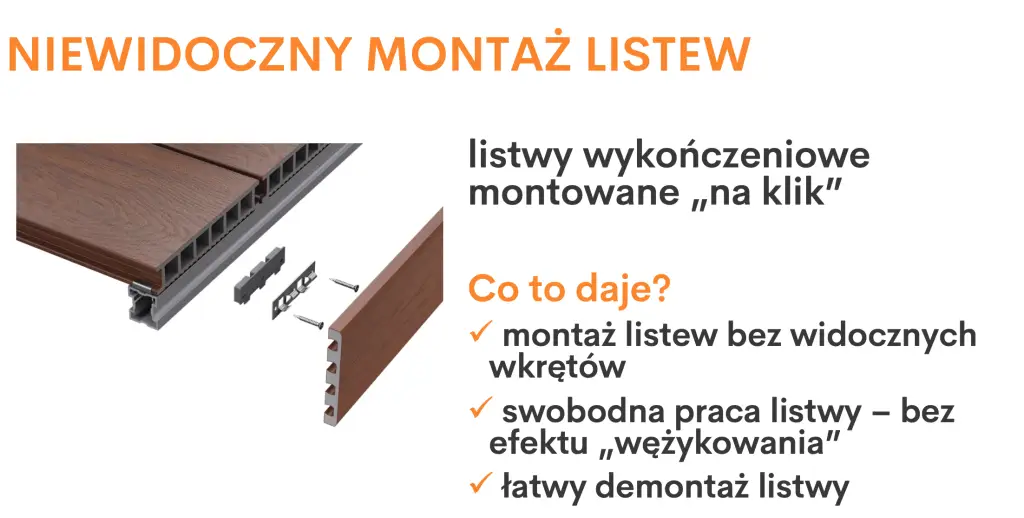 • dedykowane listwy wykończeniowe w kolorze z łatwym systemem montażu