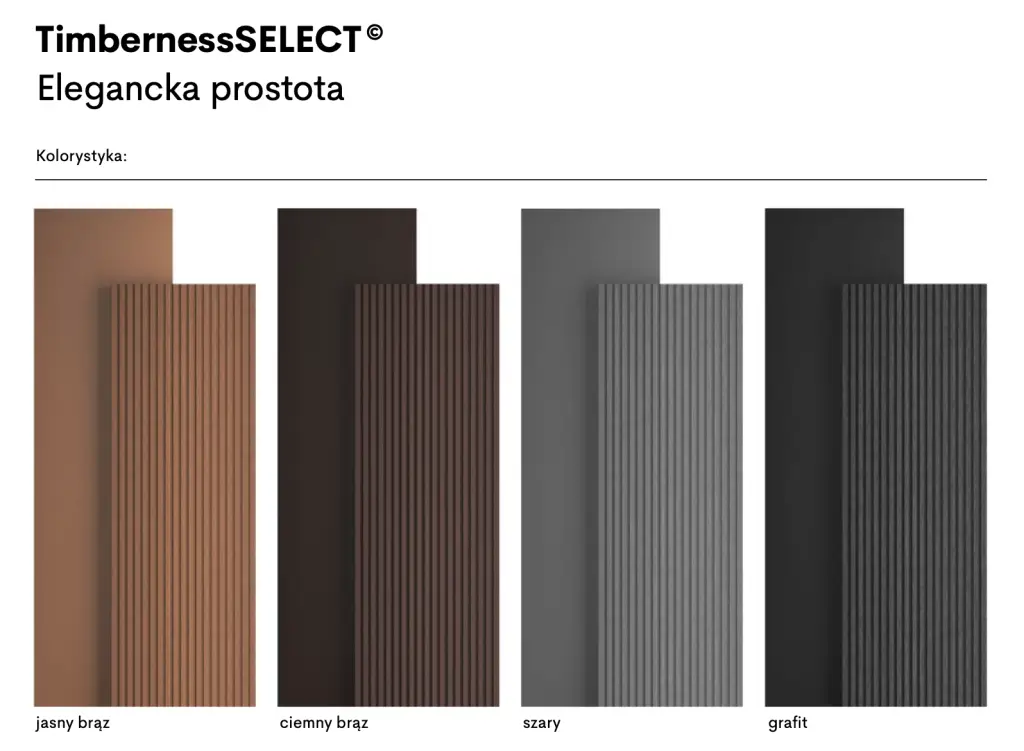 Do deski Timberness SELECT wybierz dedykowany łącznik PVC SELECT do montażu listew wykończeniowych.